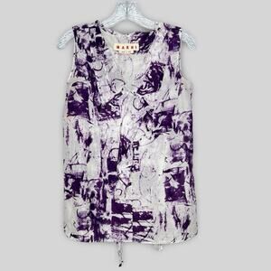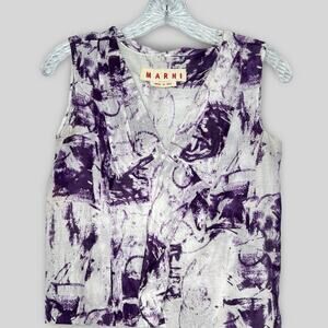 Marni abstract sleeveless ruffle front top. It has ties along the back of the neckline that can be tied into a knot or a bow behind your head. Size IT 40 which is a US small.