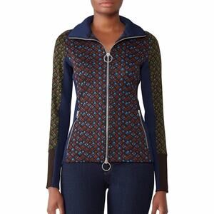 Marni Abstract Printed Zip Sweatshirt in Multicolor. Crafted from a soft printed knit, this sweatshirt features an abstract print. The relaxed silhouette is enhanced by a V-neckline, long sleeves, and an exposed front zipper closure. Functional zip pockets add practicality, while the vibrant color-block styling makes this sweatshirt a standout choice.