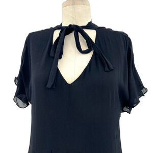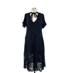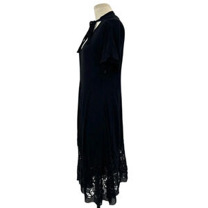 Marni Black Silk Tie Neck Crochet Hem Short Sleeve Dress Size 40 US 4