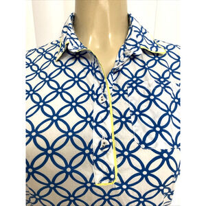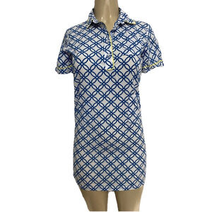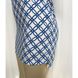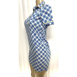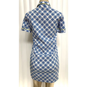 Marni Blue White Polo Dress Geometric Print Cotton Short Sleeve V Neck 10 Shift