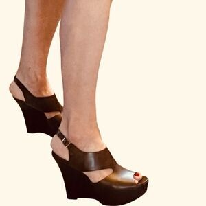 Marni Brown Leather Platform Slingback Slingback Wedge Heel 5” with a 2”