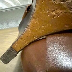 Marni Brown Leather Cutout Slingback Platform Wedge Wood 5” Heel 40 8.5