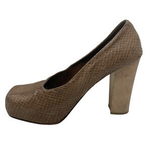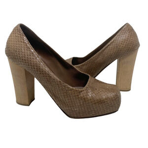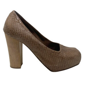 Marni Brown Snakeskin Pumps Sz EU 40 US 10 Platform Chunky Wood Heel Square Toe