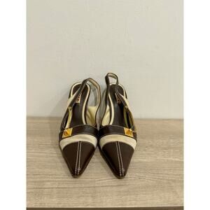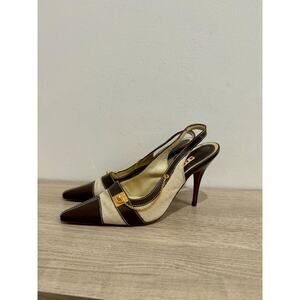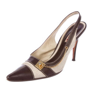 Marni Canvas/ Leather Slip On Pointed Toe Slingback Pumps Brown/Tan Womens EU 40