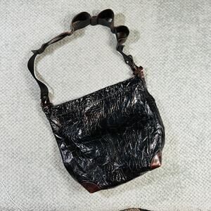 Marni Croc Embossed Black Leather Archival Bag Italy HOBO Brown Shoulder Tote Vintage RARE Beautiful Condition Brown/Black Two Tone LEather