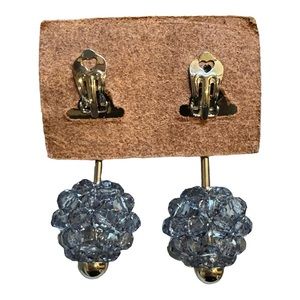 NIB with original dust bag, and paperwork. These darling clip on Marni earrings have a 2.5 inch drop. Silvertone metal surrounds a red stone at the earlobe and ends with a light blue gray cluster of crystals. (approx 1” diameter).