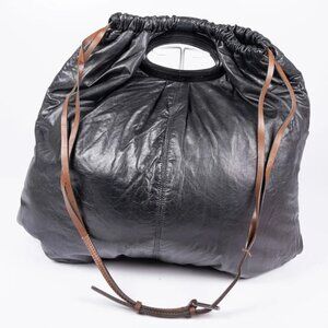 A Marni Dark Gray Nappa Leather Drawstring Shoulder Bag,