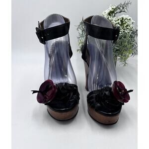Marni Designer Chunky Wooden Heel lucite flowers Platforms Retro sz 37/6.5