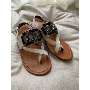 White haircalf sandals with large crystals. Genuine haircalf leather. Pre-owned. Comes with extra crystals and dustbag. Size 37/7