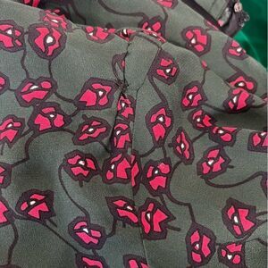 Left shoulder has been mended. Minor puckering at shoulder and back zipper. Please see pictures.