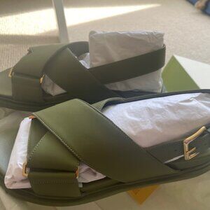 Never worn Marni dark olive leather Fussbett sandals, size 9