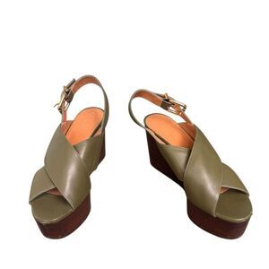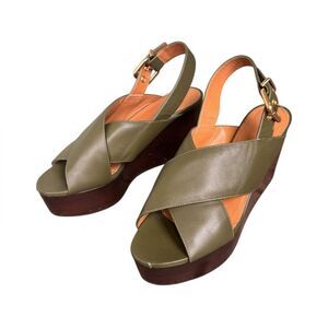 Marni Green Leather Crisscross Wedges Platform With Buckle Sandal Size 39