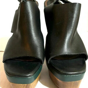 Marni + H&M black green wood leather chunky heel’s platform sandals