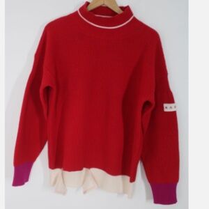 Marni IT 40 Red Wool Rib Knit Mock Neck Contrast Trim Chunky Sweater Italy