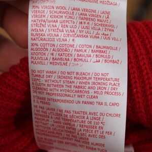 --Marni red wool/cotton rib-knit mock neck sweater with contrast trim.