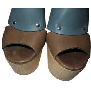 Marni Italian Leather Color Block Wooden Heeled Platform Slingback Studded Heels