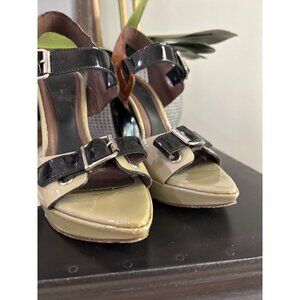 Marni Leather Colorblock Peep Toe Sandals Multicolor Womens Size 36.5