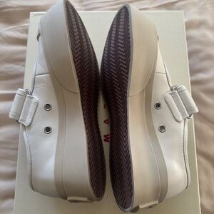 Excellent Condition! Marni's take on classic Mary Janes might just be the coolest we've seen. These 'Pablo' sneakers are crafted from supple white leather and rest on chunky rubber platform soles that create a striking shape.