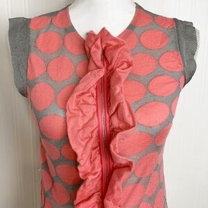 Marni Pink Silver Polka Dot Ruffle Front Top