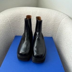 Marni Shiny Leather Chelsea Boot. Boot has the iconic square toe in shiny calf leather. Elastic sides. Lightweight micro sole. Made in Italy. Women's size 8, runs true-to-size. Worn once, little to no wear.