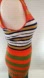 Multicolor stripe knit (100% Virgin Wool). Sheath. Sleeveless. Crewneck. Pull on. 48" from shoulder to hemline. Imported