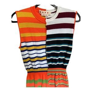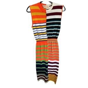 Marni Striped Midi Dress Virgin Wool Knitted Colorful IT Size 44 US Size 8