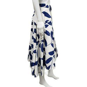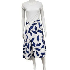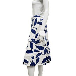 Marni White Blue Leaf Print Cotton and Linen Drill Wrap Midi Skirt Size 40 NEW