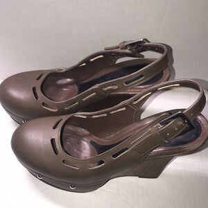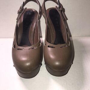 Marni Women's Brown Wedge Platform Slingback Heels Clogs Size 36