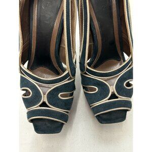 Marni Womens Platform Sandals w/ straps US 7 suede & leather Grey Navy