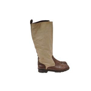 Marni Womens Riding Boots Size US9 EU39 Brown Leather Tan Canvas Vibram Lug Sole