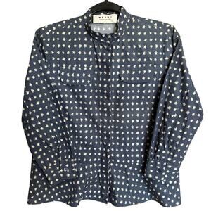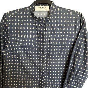 Marni Women’s Star Print Button Down Shirt Vintage Navy Cream Size IT 40 US 4