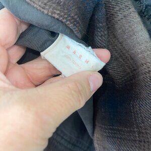 Marni Womens Top Size Small Cropped Bell Sleeve Flannel Ruffle Black Brown Plaid