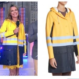Equal parts Italian luxury and Scandinavian charm, this waterproof raincoat designed by Marni in collaboration with Stutterheim boats a signature A-line fit with bold stripes and color blocking that feel very fashion forward