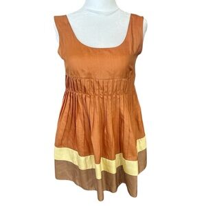 EUC Marni Vibrant Y2K Colorblock Pintucked Silk Blouse in Rust and yellow