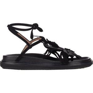 Marni / black flower embellished ankle wrap t-strap leather sandals 36 6