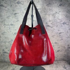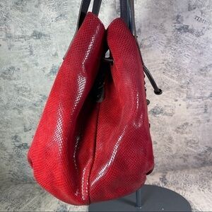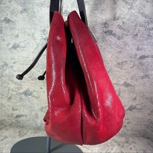 Step into the realm of opulence with this stunning Marni bucket bag in an exhilarating red snakeskin motif.