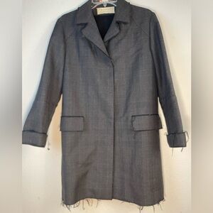 Marni charcoal 100% wool coat long raw hem edges glen check snap front 38 2 S XS