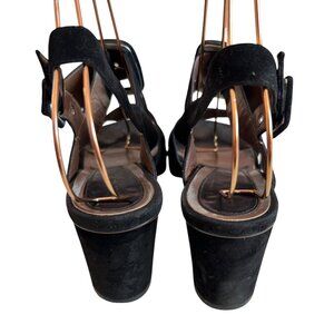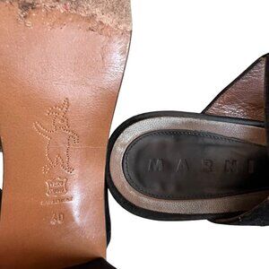 Marni high heel sandals black suede square toe IT 40 buckles grommets platform