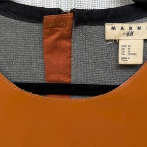 Marni H&M Orange Patent Leather Cotton Shirt Short Sleeve Top, size 10