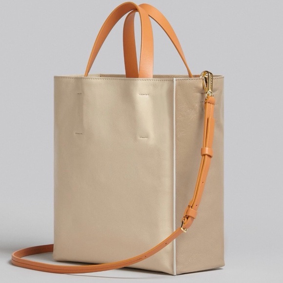 Marni MUSEO SOFT SMALL BAG IN GREY-GREEN AND BEIGE LEATHER Tote