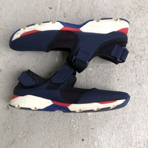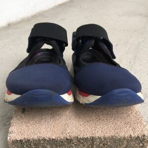 Nylon Velcro sneakers Get or not New# I need to clean up but they are in good condition. Insole was swapped out For a supportive cristian style. No longer have the originals. I’m a size 10 and they fit perfectly inside is no longer visible so I am including measurement inside measurements to talk for a 10.25 inches measuring the sole is 11 inches.