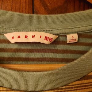 Marni Tee from collaboration with Uniqlo. Ringer tee with mixed prints and boxier fit. EUC with light overall wear.