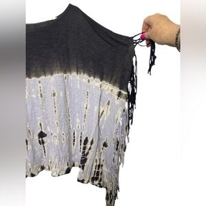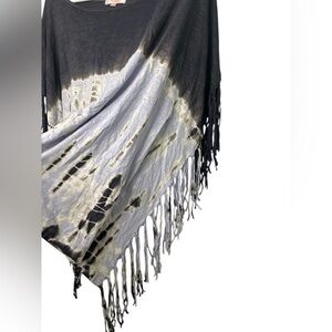 Maronie Black and Gray Tie-Dye Fringe Top NWOT. Size small. Poncho style. Cotton/modal blend