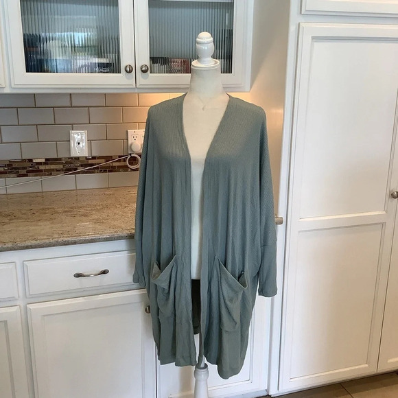 Maronie Sage Green Ribbed Cardigan Open Front NWT Size Medium