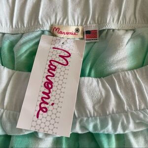 Maronie x Revolve Green and White Tie Dye Elastic Waist Lounge Shorts SZ M BNWT