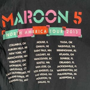 Maroon 5 Concert Tour Band Black Short Sleeve T Shirt 2013 Size Small