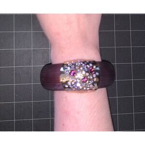 Maroon And Gold Toned Lucite Bracelet 8” Multi Colored Stones