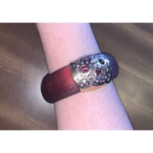 Wine red or maroon colored band with rhinestones encased in gold tone.