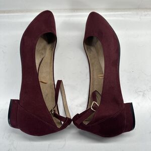 Maroon Ankle Strap Ballet Flats Shoes Women's 9