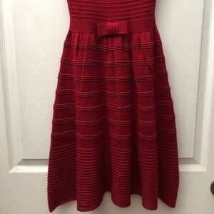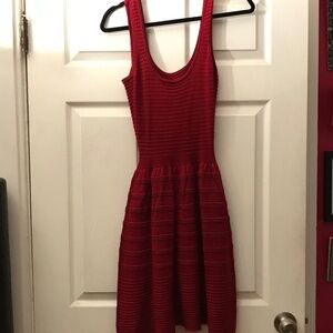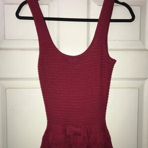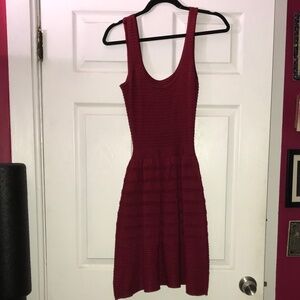 Maroon sweater dress with maroon cotton lining. Cute bow detail at the waist. Only worn a couple times. Fantastic condition. Brand is BB Dakota. Dress has some stretch in bust and waist.